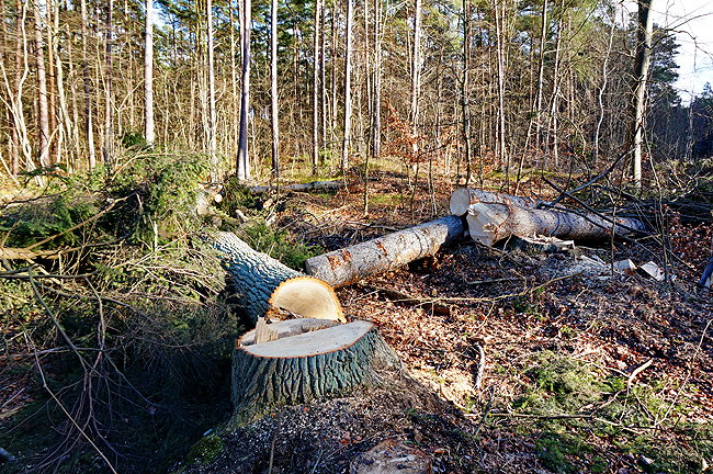 die Bäume müssen weg, man tut's mit Heimlichkeit und List, sie sind der Tierwelt Schreck. Der Mantel, der das alles deckt, dem sieht man deutlich an, dass dieser nur den Eindruck weckt, man tue, was man kann. Man kann nicht viel, man tut nur so, die Gelder sind halt da und jede Arbeitskraft ist froh, drum sagt man ja auch ja. |