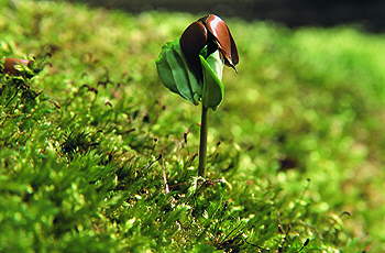 schaut neidvoll hoch zur Krone, es wäre wohl sein schönster Traum, für den sich 's wachsen lohne. Doch plötzlich braust ein Sturm entlang, es fällt der große Baum. Da denkt der Winzling: Gott sei Dank, es war ja nur ein Traum. |