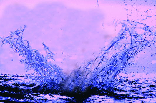 schaut listig in die Runde, er ist geduldig und hellwach, er hofft auf seine Stunde. Und plötzlich ist das Fass randvoll, der Regen am versiegen, er sagt noch, das ist wundervoll, dann sieht man ihn schon fliegen. Er macht sich dick, er macht sich rund, er mehrt im Fall die Kräfte, dann klatscht er auf wie hundert Pfund, schon spritzen alle Säfte. Das Wasser in Bewegung kommt, es schwappt die große Welle, er schaut heraus, dann ruft er prompt: ich war's - der Fall der Fälle! |