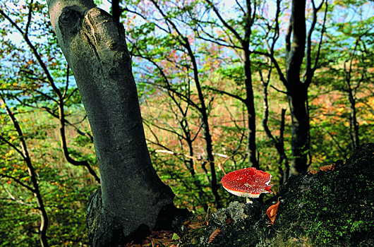 und fand sich etwas fade, er war zwar schön - so groß und ganz, doch farblos die Fassade. Er sammelt ein paar Sporen ein, die sich im Laub verfingen, sie reiften dann von ganz allein, so musst' das Werk gelingen. Der Herbst dann endlich gab es preis, der Wald bekam ein Leuchten, ein roter Hut - mit Pünktchen weiß - das Monochrom verscheuchten. Damit der Pilz nun nicht als Held die andern übertrifft und niemand sonst im Wald gefällt, versah man ihn mit Gift. |
