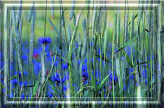 Aus blauen Blumen hier entstand ein zartes Kranzgewinde, das ich um ihren Nacken band, auf dass es ewig binde. Seitdem ist dieses Kornblum-Blau die Schönste aller Farben und jeder weiß von uns genau, die Liebe muss nicht darben. |