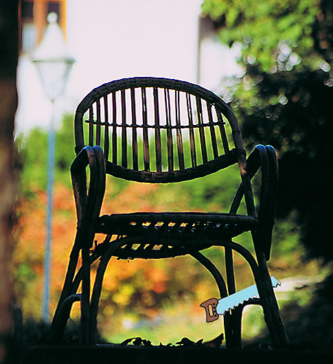 der an dem Stuhlbein sägt.